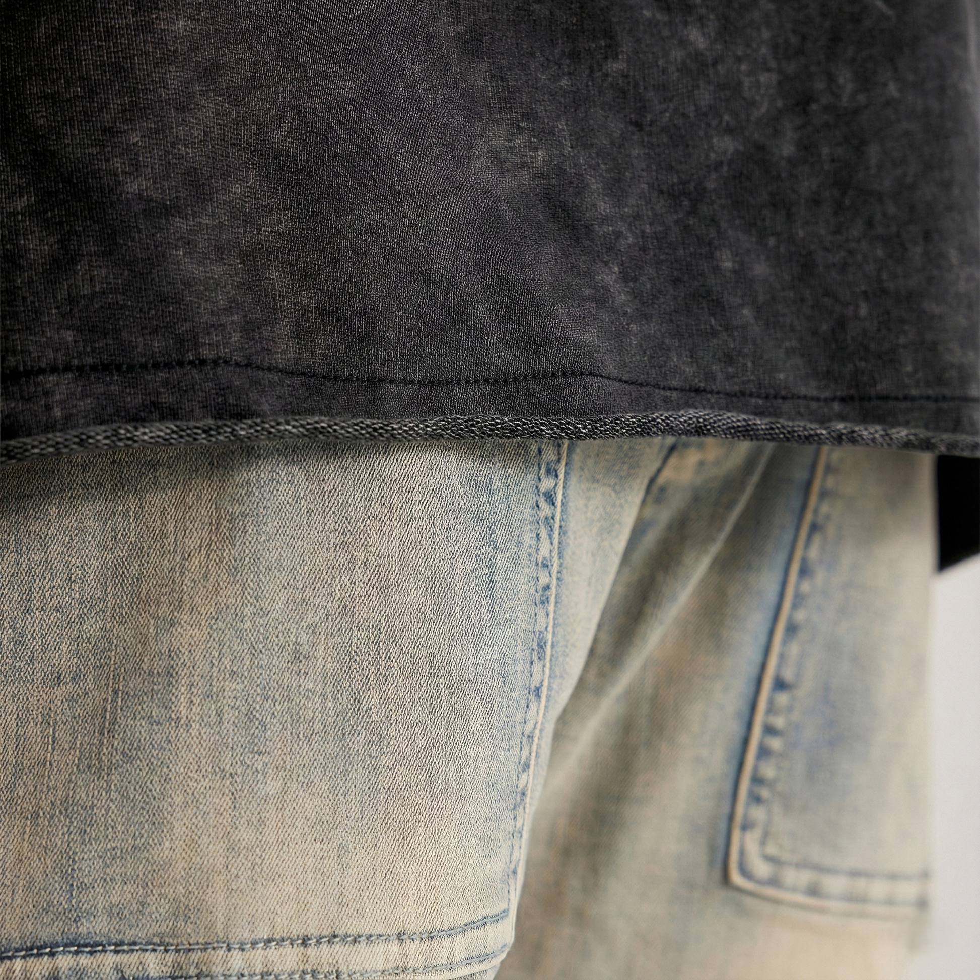 Beat-up on purpose. Washed till it looks like you stole it from an underground gig in ’99. Boxy, heavy, and rough around the edges, litteraly.